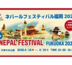 福岡・天神で春恒例の国際イベント「ネパールフェスティバル福岡2026」が、4月18日・19日の2日間開催されます。 ネパールの音楽やグルメ、文化体験が一堂に集まり、多文化交流を体感できる大型イベントです。入場無料で気軽に […]