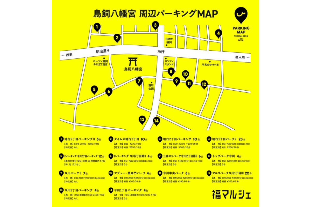 公式サイトにて「周辺パーキングMAP」が公開されているので、車でお越しの際は事前にチェックを。