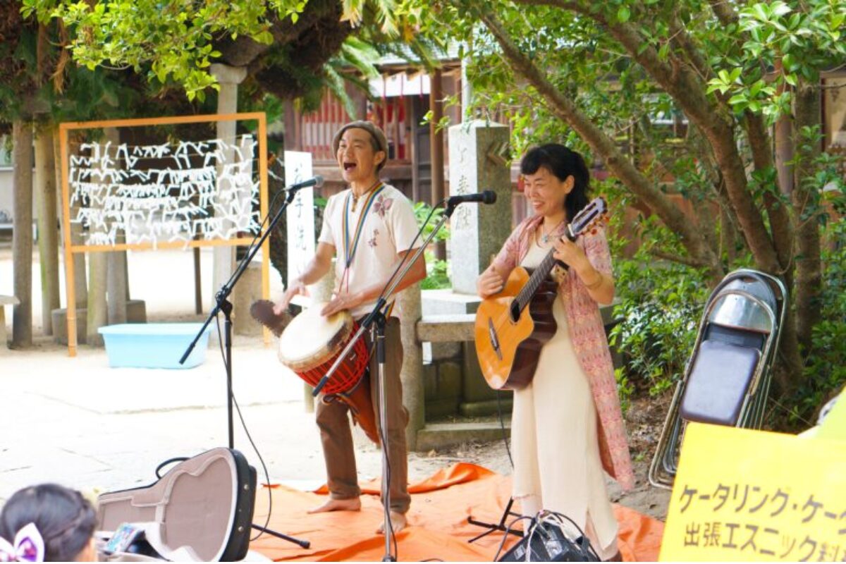 会場では、福岡ゆかりのアーティストによる生演奏も開催!ボサノヴァなど心地よい音楽が境内に流れ、ゆったりと買い物や食事を楽しめます。