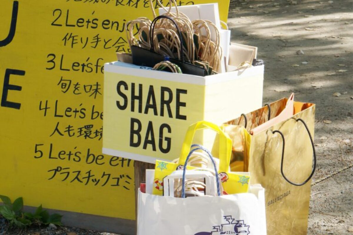 おうちに眠っている紙袋やエコバッグをマルシェに持ち寄って、忘れた方にシェアする「シェアバッグ」活動も継続中です。