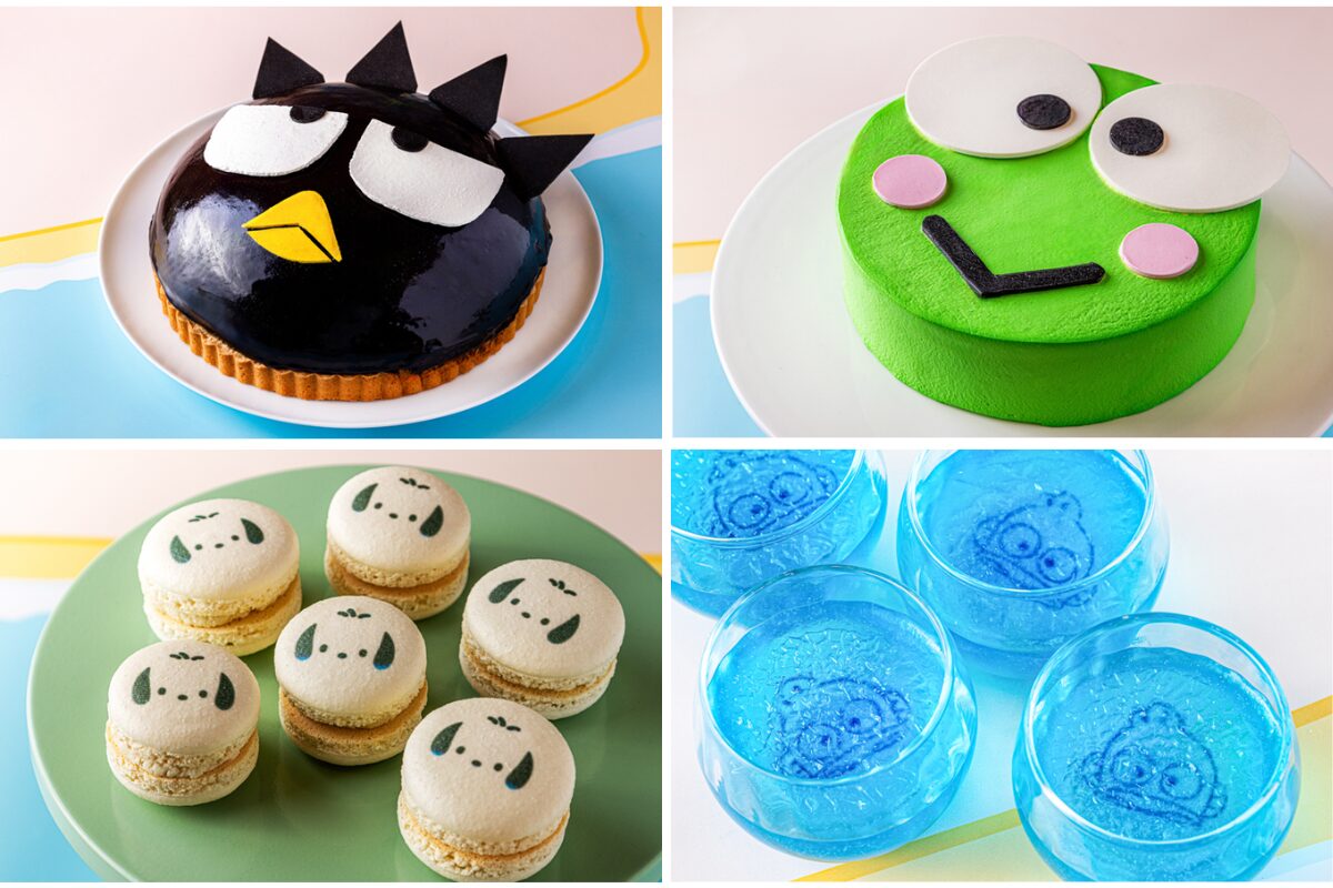 けろけろけろっぴの顔をかたどったミント&レモンのショートケーキや、チェリーのコンフィを包んだバッドばつ丸のチョコレートムースタルト、ポチャッコのマカロンなど、見た目の可愛さはもちろん味にもこだわったラインアップです。さらに、八女茶を使った抹茶プリンなど、福岡ならではの素材を活かしたメニューも楽しめます。