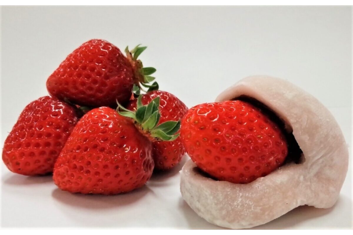 宗像産の朝採りいちごを使った人気のいちご大福(540円・税込)。上品なこし餡で、いちごの酸味が引き立ちます。