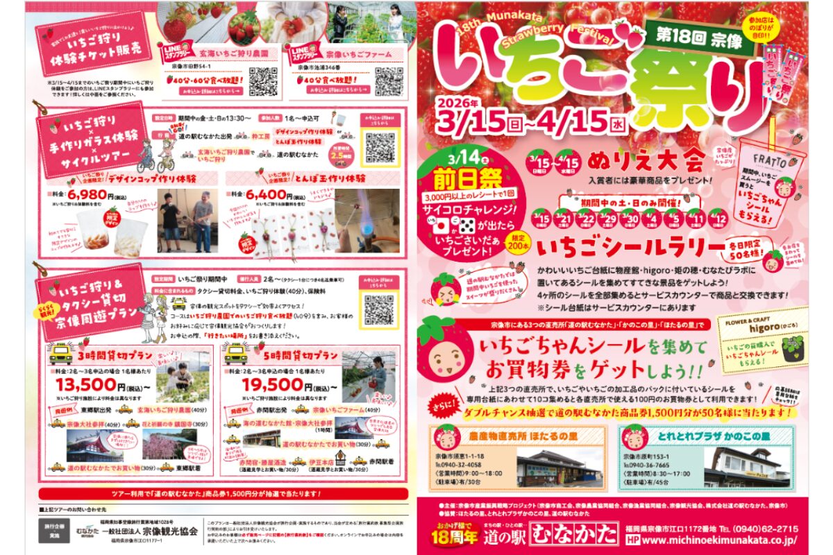 宗像の豊かな自然と人の温かさに触れながら、旬のあまおうを味わうひとときは、この季節だけの特別な体験。甘い思い出をつくりに、ぜひ「宗像いちご祭り2026」へ足を運んでみてはいかがでしょうか。