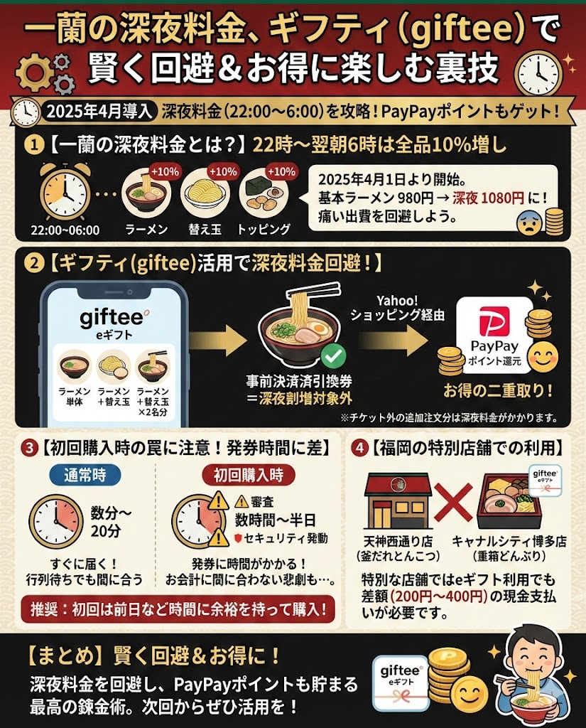 一蘭の深夜料金10%増しを回避!Yahoo!ショッピングのギフティ活用術と注意点