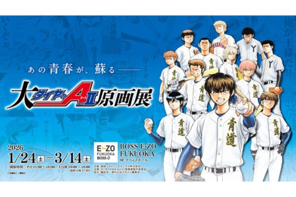 シリーズ連載20周年を記念した「大『ダイヤのA actⅡ』原画展」が福岡・BOSS E・ZO FUKUOKAで2026年1月24日(土)より開催決定!福岡展では、限定グルメやコラボカードの配布、新商品の販売など、ここでしか楽しめないコンテンツが盛りだくさんです。