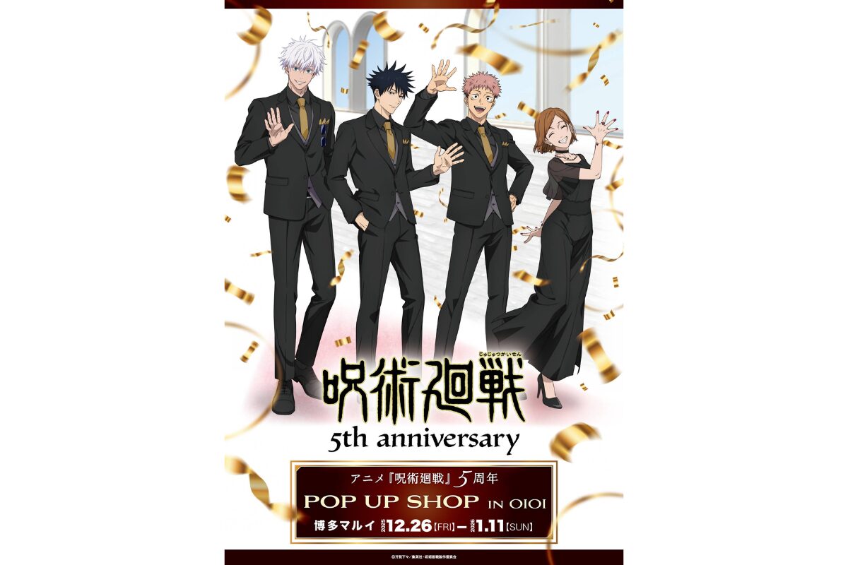 TVアニメ『呪術廻戦』5周年を記念したPOP UP SHOPが、2025年12月26日(金)から博多マルイに登場!ファン必見のオリジナルグッズや購入特典が盛りだくさん。年末年始に福岡で楽しめる注目イベントです。