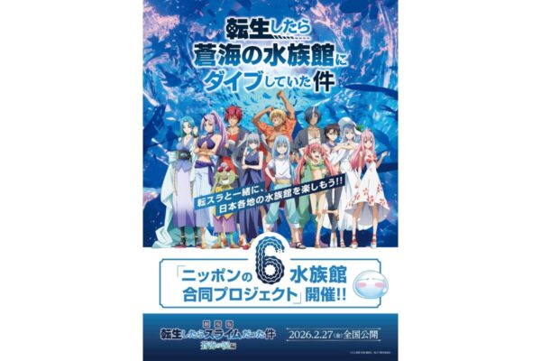 2026年2月27日公開予定の『劇場版 転生したらスライムだった件 蒼海の涙編』と、日本国内6つの水族館が連携した合同プロジェクトとして開催されるコラボイベントです。福岡では「マリンワールド海の中道」が参加し、館内でさまざまな企画が展開されます。