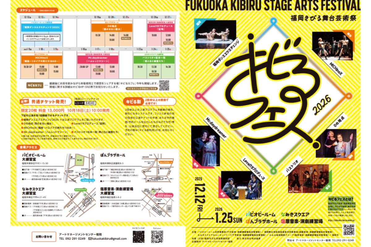 福岡の冬を彩る舞台芸術の祭典「キビるフェス2026(福岡きびる舞台芸術祭)」が、2025年12月12日(金)から2026年1月25日(日)まで開催されます。市内4会場を舞台に、演劇やダンス、トーク企画など多彩なプログラムが楽しめる大型フェスティバルです。