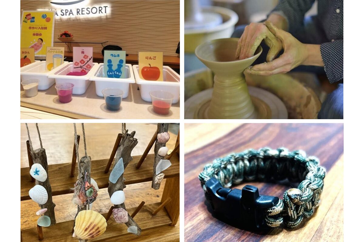 カラフルな粉を混ぜて、自分好みの香りを楽しめる入浴剤を作ります。(協力:照葉スパリゾート) - ろくろまわし体験(100円)