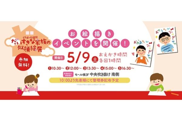 お子さまの描いた“家族の似顔絵”が館内に展示される心温まるイベント「だいすきな家族の似顔絵展」が、2026年5月9日(土)に開催されます。参加は無料で、当日参加も可能。母の日の贈り物にもぴったりな思い出づくりイベントとして、親子で楽しめる内容となっています。