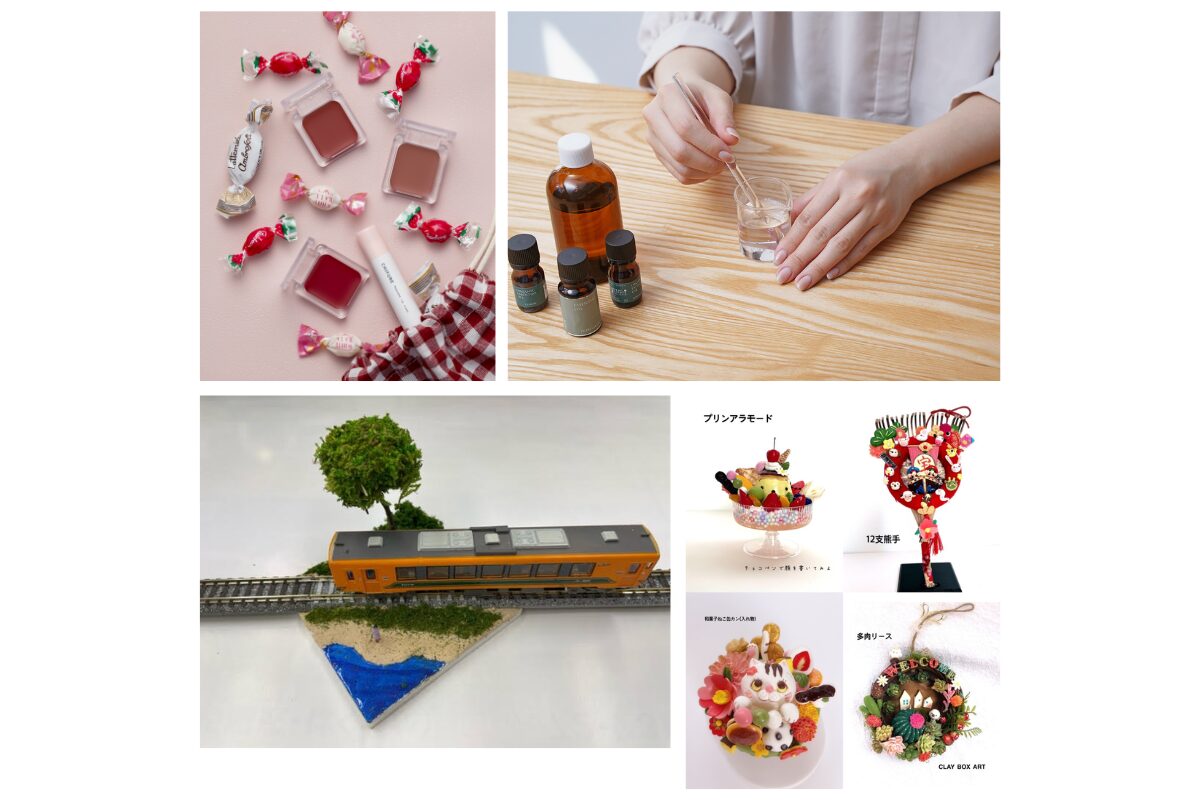 期間中は、カラフルメイク体験やルームスプレーづくり、ハンドスパ体験、ミニジオラマやミニチュアパフェづくりなど、ジャンルの異なる講座が日替わりで登場します。ものづくりが好きなお子さんはもちろん、初めてワークショップに参加するお子さんにも楽しみやすい内容がそろっています。