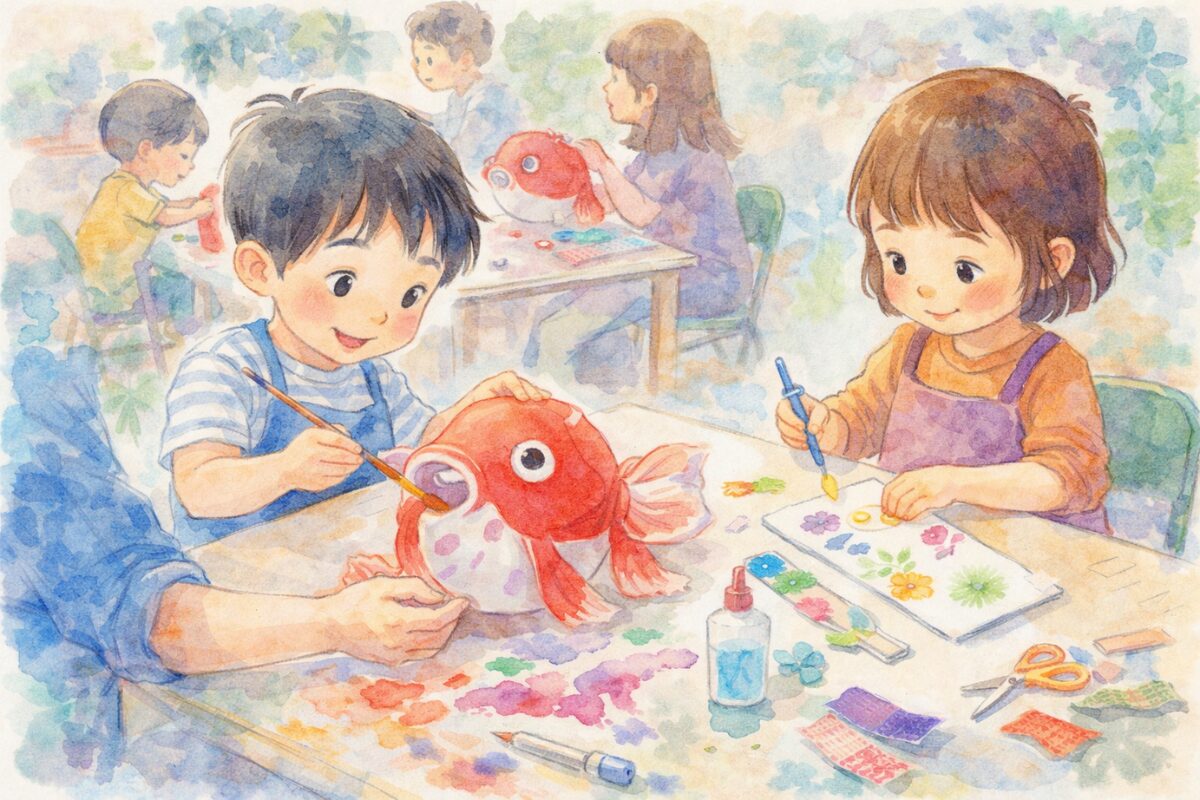 柳井市のかわいらしい金魚ちょうちん作りや、伝統の山代和紙を使ったしおり作りなど、山口の文化に触れながらものづくりを楽しめるのが大きな魅力。
