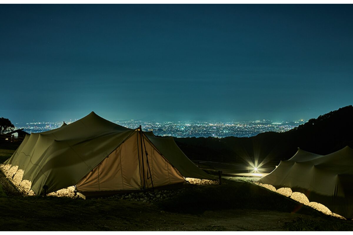 福岡市内を一望できる自然豊かな油山に位置する「Snow Peak YAKEI SUITE ABURAYAMA FUKUOKA」。昼は小鳥のさえずりに耳を傾けながら自然体験を、夜は美しい夜景と焚火を囲んで家族団らんのひとときを楽しめます。