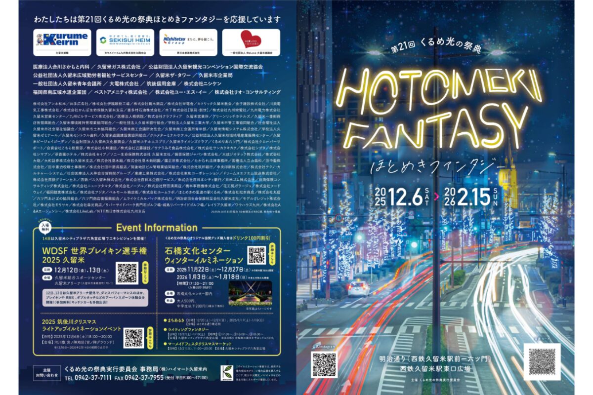 - 主催・問合せ:くるめ光の祭典実行委員会事務局(株式会社ハイマート久留米)