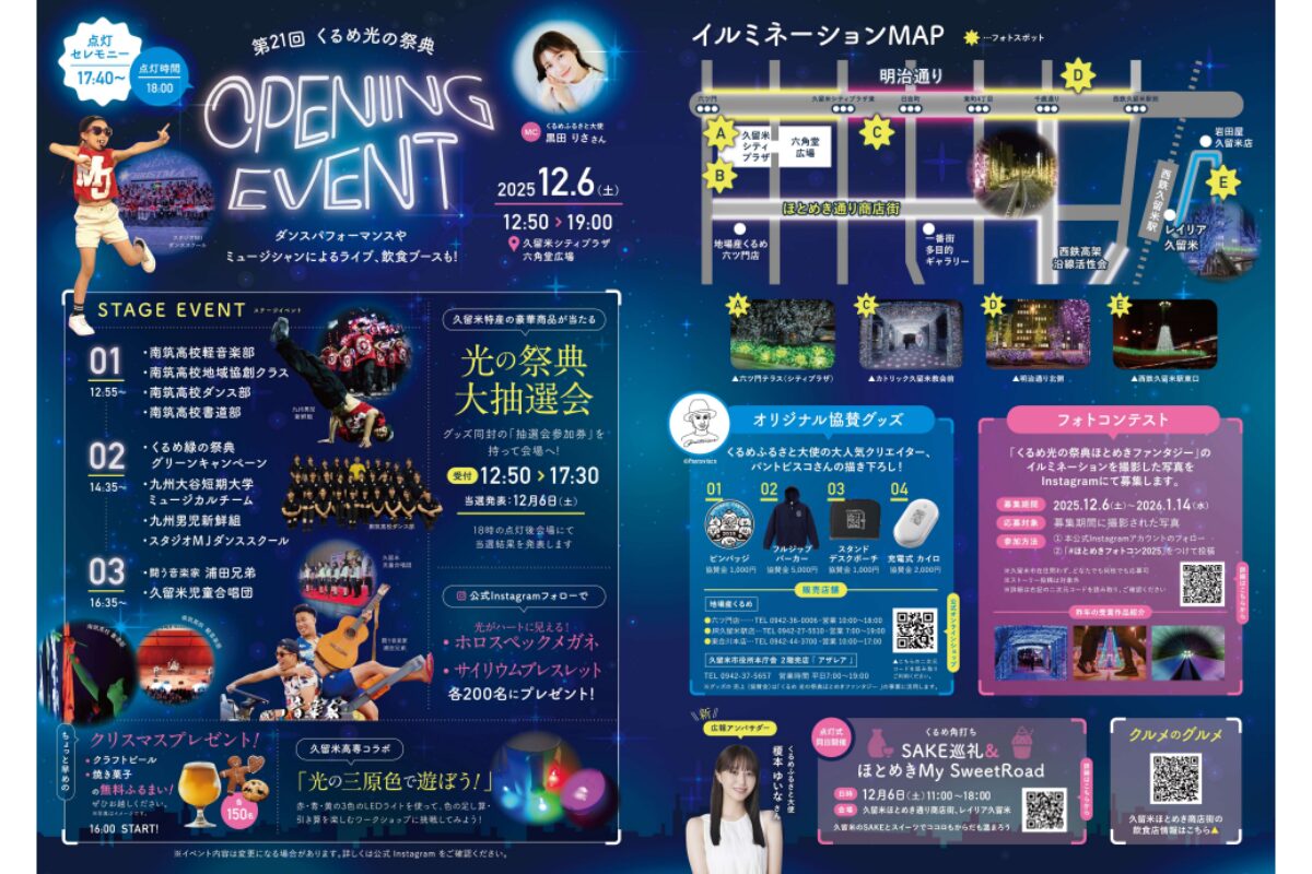 2025年12月6日(土)には、久留米シティプラザ六角堂広場にてオープニングセレモニーが開催され、ステージイベントやワークショップ、プレゼント企画が予定されています。