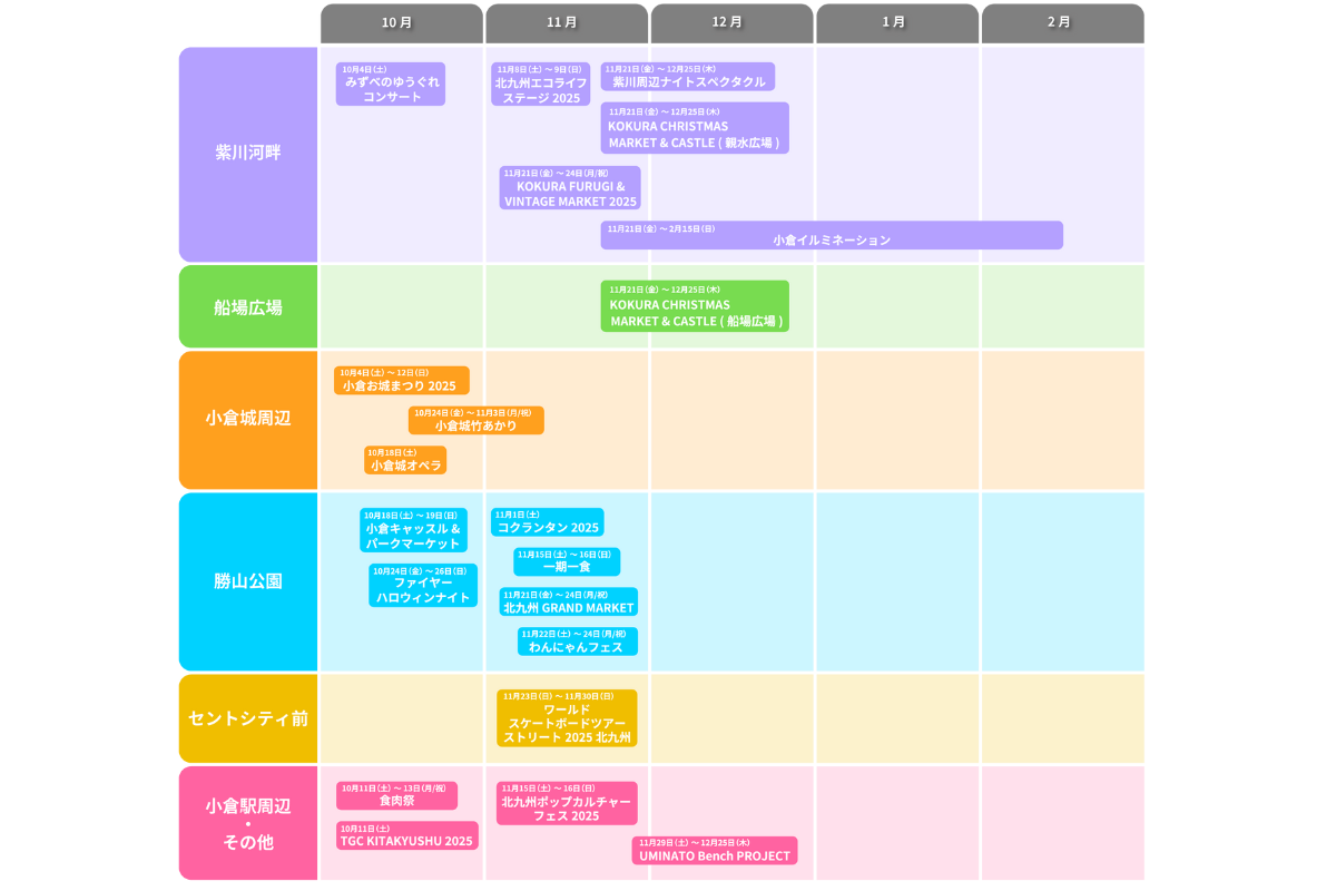 会場はJR小倉駅やJR西小倉駅から徒歩圏内とアクセスも抜群です。最新情報や詳細なスケジュールは、公式サイトやSNSで随時発信されているので、訪問前にチェックするのがおすすめです。