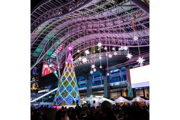 JR博多駅前広場は白いヒュッテとイルミネーションが魅力