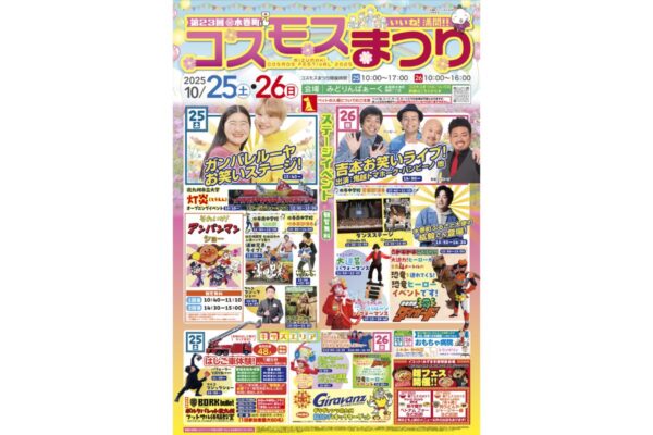 500万本のコスモスが広がる絶景の花畑に加え、子どもから大人まで楽しめるステージや体験イベント、そして地元ならではのグルメが揃う「第23回水巻コスモスまつり」。