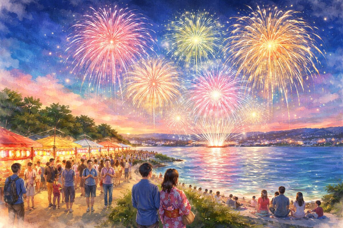 - 特徴:海上から打ち上げられる360度パノラマ花火