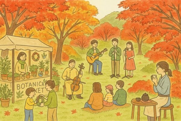 白野江植物公園の「紅葉まつり ボタニカルマーケット」は、ただ紅葉を眺めるだけでなく、まさ植物に触れ、自然を感じ、音楽と味覚を楽しむ、に五感で味わう秋の体験イベントです。