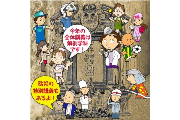 毎年多くの応募が寄せられる「子ども医学部」は、久留米市内の医師をはじめとした医療関係者が全面協力する本格的な体験プログラム。今年のテーマは「解剖学科」で、人体の基礎を学ぶ講義がグランドホールで実施されます。保護者の聴講も可能です。