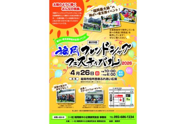 主催は福岡県中小企業家同友会などで、問い合わせは主催事務局または福岡市福祉局障がい企画課(092-711-4248)で受け付けています。