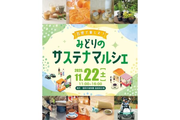 2025年11月22日(土)、福岡市植物園の温室前広場で、環境にやさしく、親子でも楽しめる「サステナブルイベント」が開催されます。植物や雑貨、フードに加え、体験型ブースやプレゼント企画も満載。