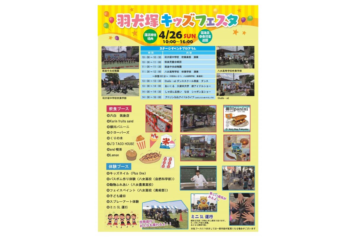 グルメのイベント情報 羽犬塚キッズフェスタ2026開催 4月26日に筑後市で親子向け春イベント -