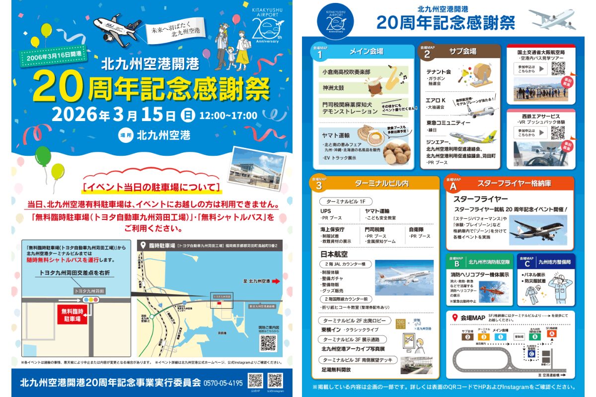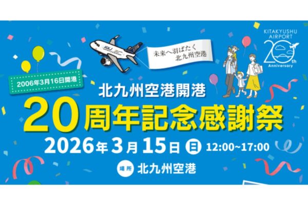 北九州空港の開港20周年を記念した「北九州空港開港20周年記念感謝祭」が、2026年3月15日(日)に開催されます。