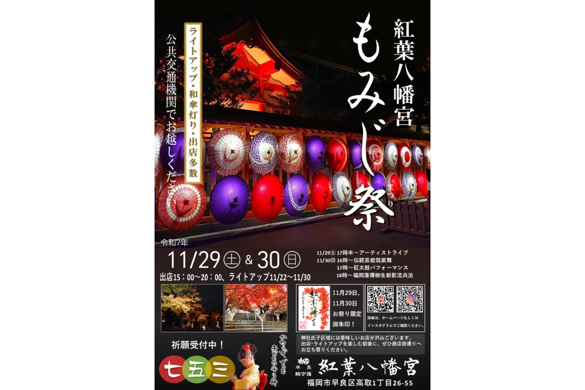 紅葉八幡宮は、室町時代に創建され、黒田藩の守護神としても崇敬を集めた由緒ある神社です。毎年秋には、境内を彩る紅葉が見頃を迎え、「もみじ祭り」としてライトアップや伝統芸能、露店などで賑わいます。2025年も2日間にわたり、地元住民や観光客を魅了する多彩なイベントが予定されています。