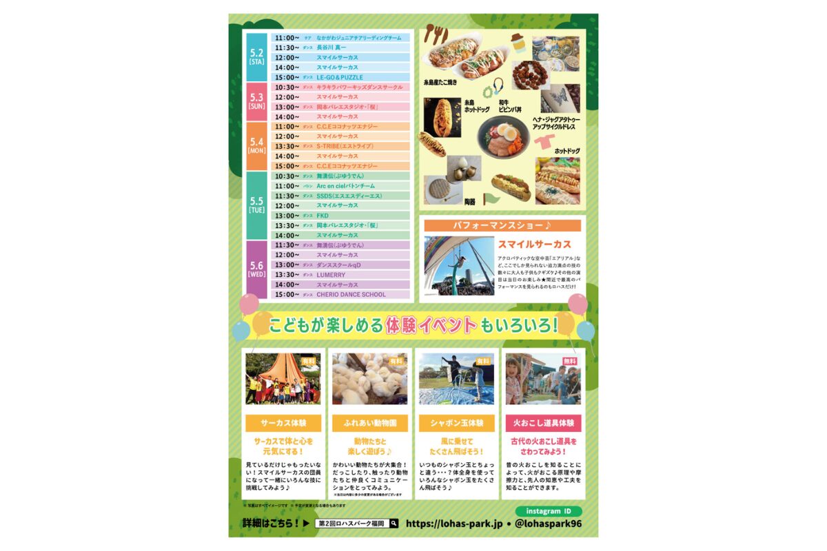 雑貨やフードを楽しむだけでなく、ロハスという価値観に触れられるのがこのイベントの魅力です。買い物と体験をあわせて楽しみたい人にとって、ゴールデンウィークの舞鶴公園で注目したい催しといえます。