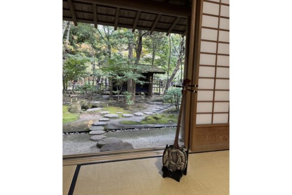 午後には沖縄民謡の三線(さんしん)演奏が披露され、日本庭園にやさしく響き渡ります。演奏は2回行われ、各回30名限定での鑑賞となります。