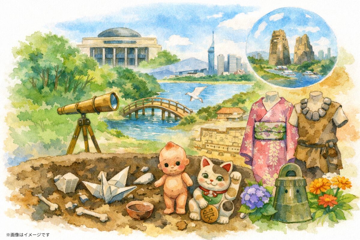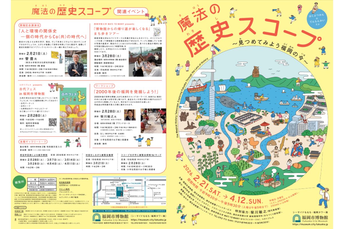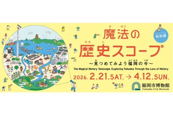 福岡市博物館で、2026年2月21日(土)から4月12日(日)まで開催される特別展「魔法の歴史スコープ~見つめてみよう福岡の今~」では、過去と現代、そして未来を結ぶ“人と環境”の関係を深く掘り下げます。現代アートや学生とのコラボ作品も登場し、大人から子どもまで学びと驚きに満ちた展示内容となっています。