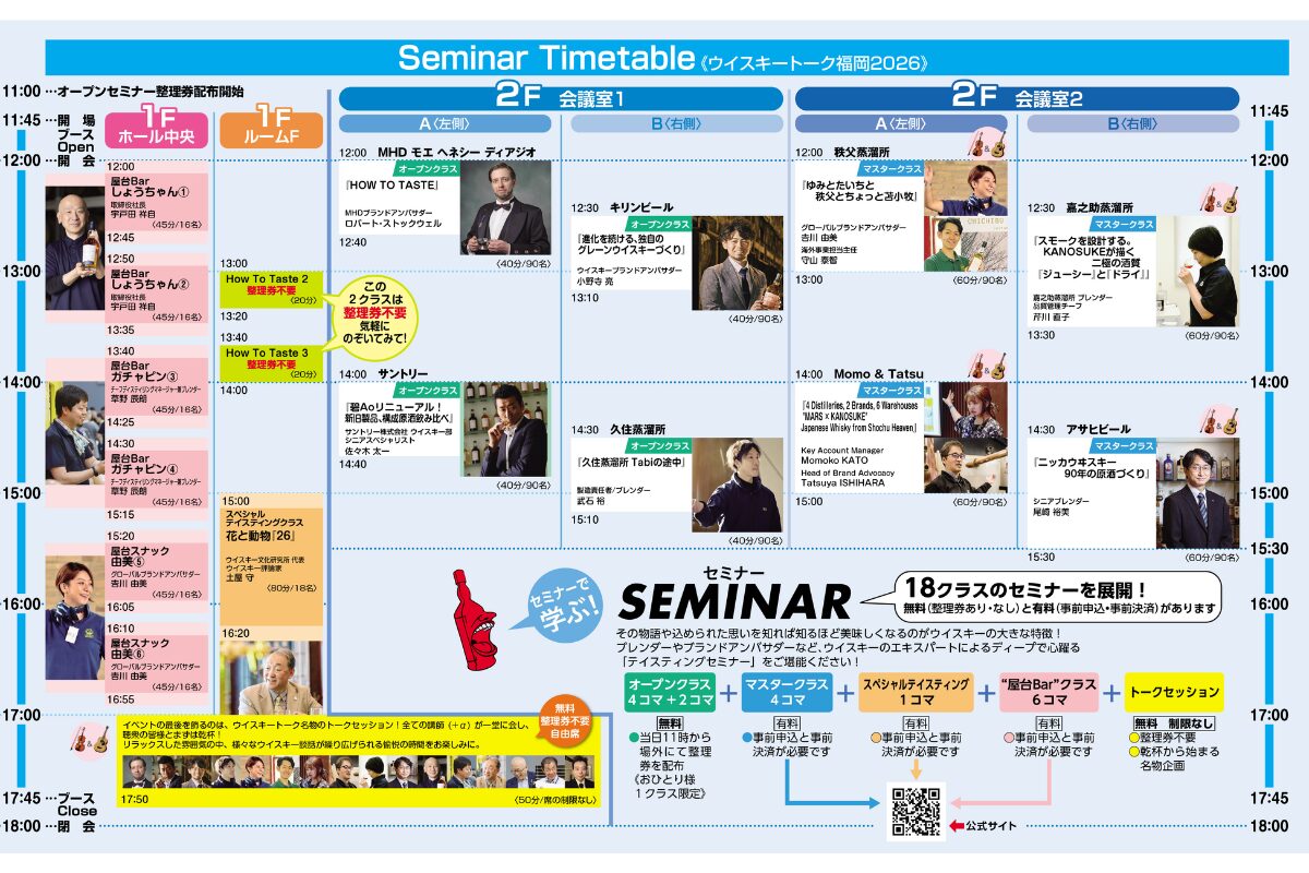 無料のオープンセミナー(約40分・定員90名)では、ウイスキーの基本的な楽しみ方を学べます。さらに、講師によるやさしい解説の短時間セミナーもあり、初めての方でも気軽に参加できます。