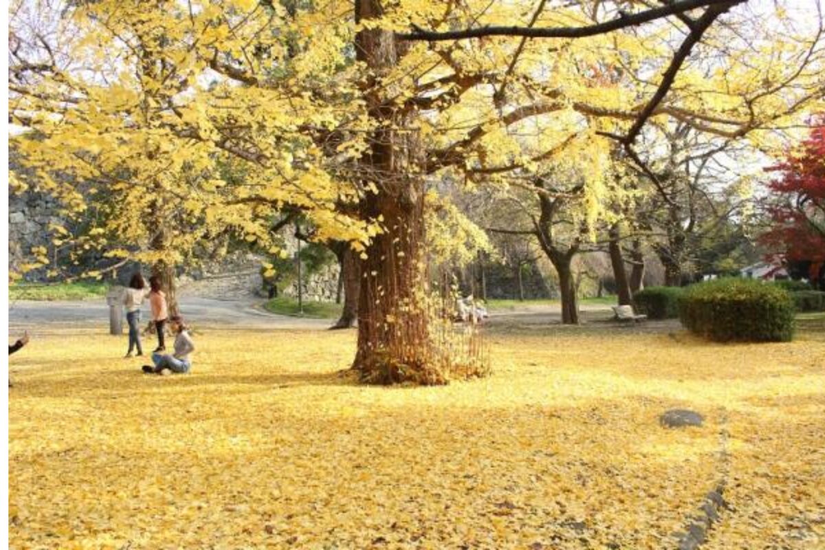 - 見どころ:本丸・二の丸跡の大イチョウの黄色い絨毯、モミジの彩り