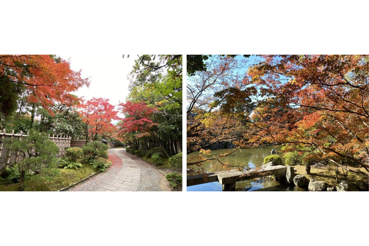 紅葉だけでなく、園内には歴史的な建物や神社も点在しており、秋の散策にぴったり。木々の葉音とともに、日本庭園ならではの静寂なひとときを過ごせます。
