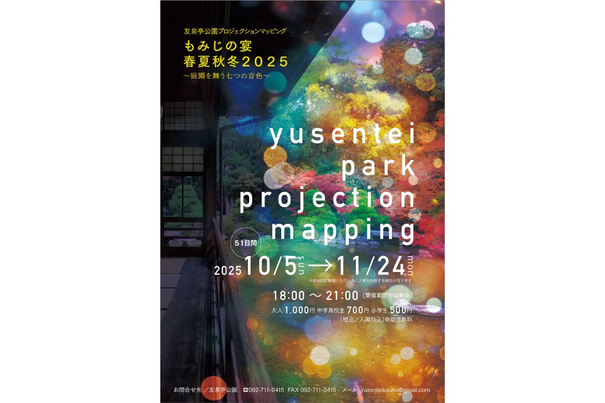 2025年10月5日(日)から11月24日(月・祝)までの期間中、「友泉亭公園プロジェクションマッピング もみじの宴 春夏秋冬~庭園を舞う七つの音色~」が開催中。