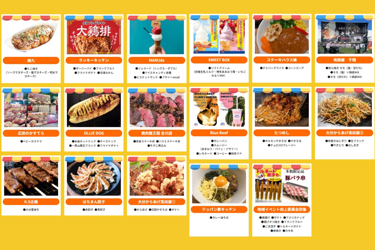宗像や福岡のご当地グルメが楽しめる飲食ブースが多数出店。地元飲食店の味を屋外で楽しめます。