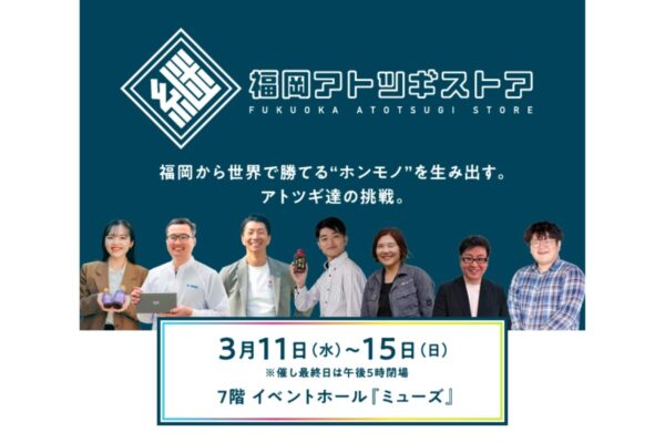 福岡県内の若手後継者“アトツギ”たちが手がけた新商品を一堂に集めた「福岡アトツギストア」が、2026年3月11日(水)から3月15日(日)まで博多阪急で開催されます。