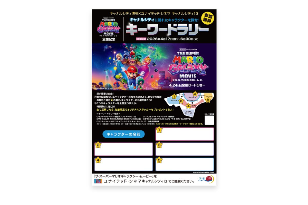 画『ザ・スーパーマリオギャラクシー・ムービー』の公開を記念して、キャナルシティ博多では2026年4月17日(金)から6月30日(火)まで特別キャンペーンを実施します。