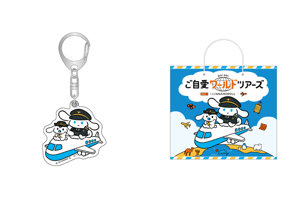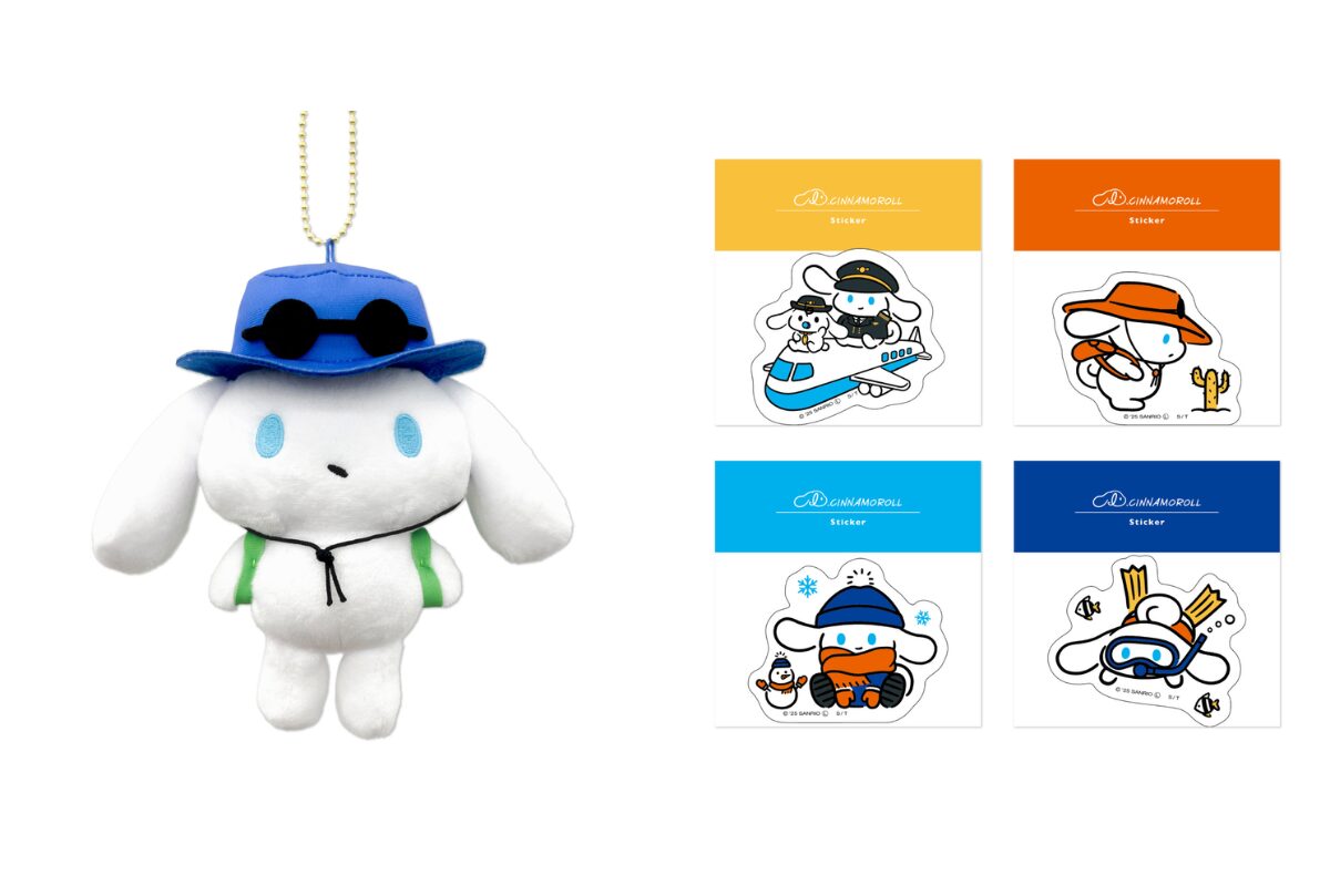 イベント限定の描き下ろしイラストでは、シナモンがスーツケースを持ち、世界各国を旅する様子が表現されています。その愛らしい姿が、ぬいぐるみやキーホルダー、ステッカーなどのグッズになって登場。