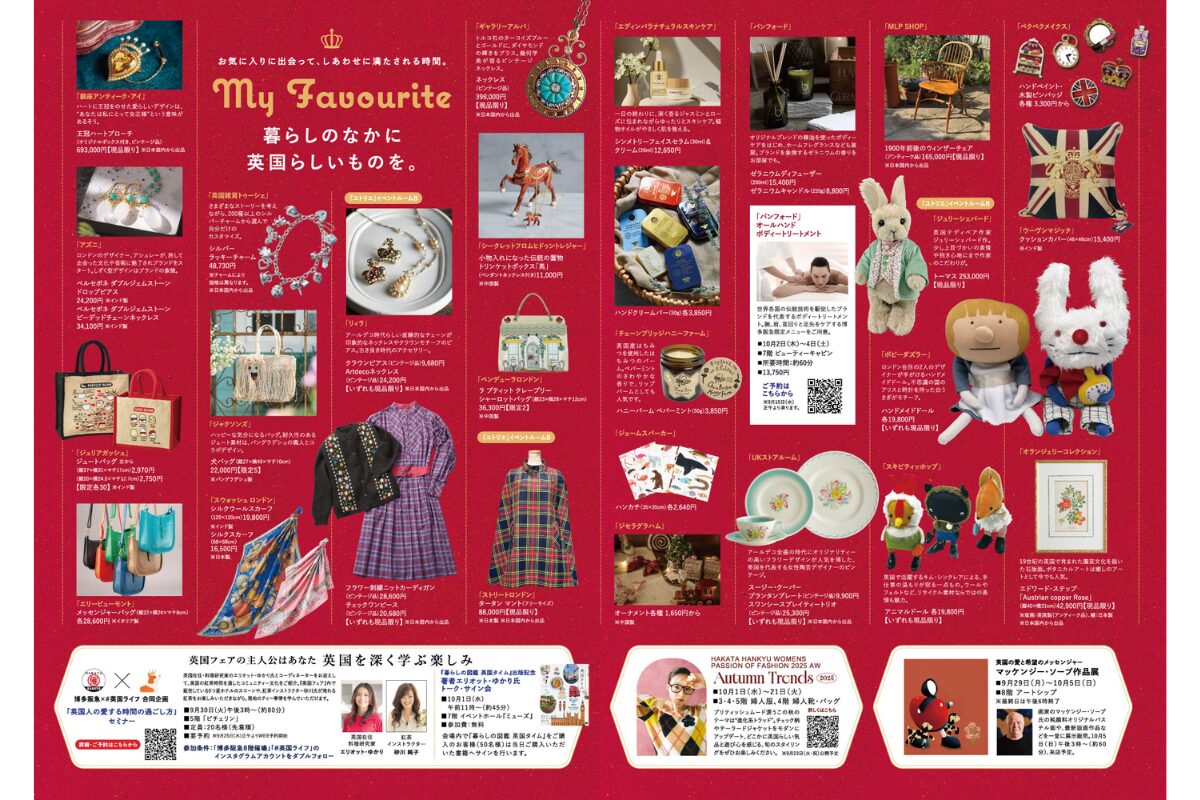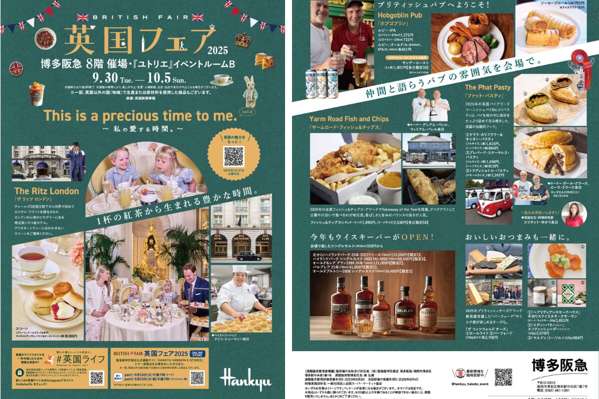 英国フェア2025の基本情報をご紹介します。アクセスしやすい博多阪急で開催されるため、仕事帰りや休日のお出かけにも立ち寄りやすいのが魅力です。