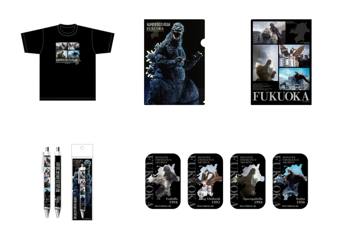 「ゴジラ Tシャツ 福岡怪獣出現録 BK」やクリアファイルなど、福岡をテーマにしたデザインの商品を展開。さらに、限定仕様のフィギュアも取り扱われ、ここでしか手に入らないラインナップとなっています。