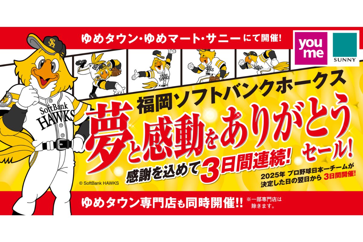 福岡市内を含む九州・山口エリアのゆめタウン全店では、ホークス優勝を祝した大規模セールを3日間限定で開催。