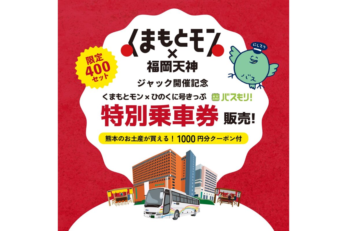 福岡~熊本間の高速バス往復乗車券が、クーポン付きで期間限定販売されます(10/8~12/21、400枚限定)。