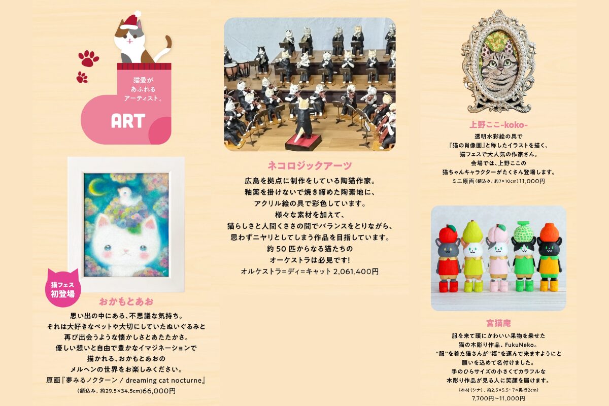 アートからアクセサリー、ファッション、スイーツまで、多彩な猫アイテムが勢ぞろい。