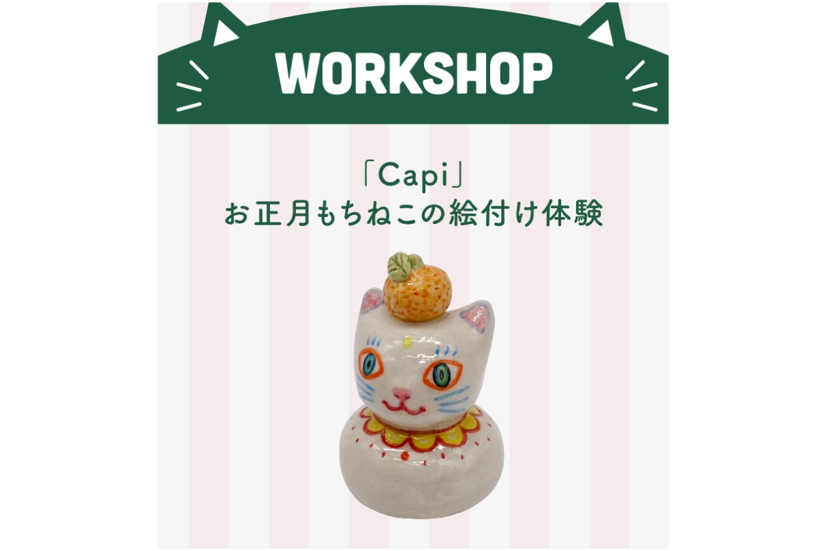 陶芸作家Capiさんによる、オリジナルの素焼き「もちねこ」に絵付けができるワークショップも開催されます。