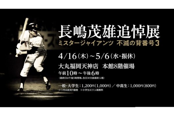 2026年4月16日から5月6日まで、大丸福岡天神店で「長嶋茂雄追悼展 ミスタージャイアンツ 不滅の背番号『3』」が開催されます。